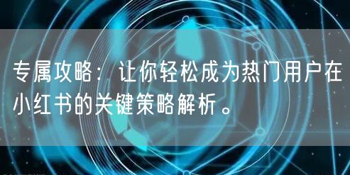 专属攻略:让你轻松成为热门用户在小红书的关键策略解析。