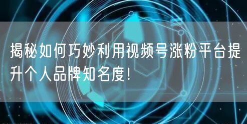 揭秘如何巧妙利用视频号涨粉平台提升个人品牌知名度!